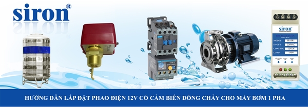 Tủ điện phao 12V điều khiển máy bơm nước 1 pha lắp cảm biến dòng chảy
