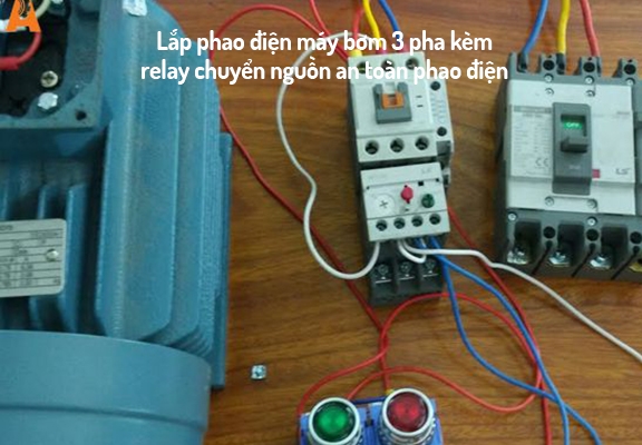 Lắp phao điện máy bơm 3 pha kèm relay chuyển nguồn an toàn phao điện