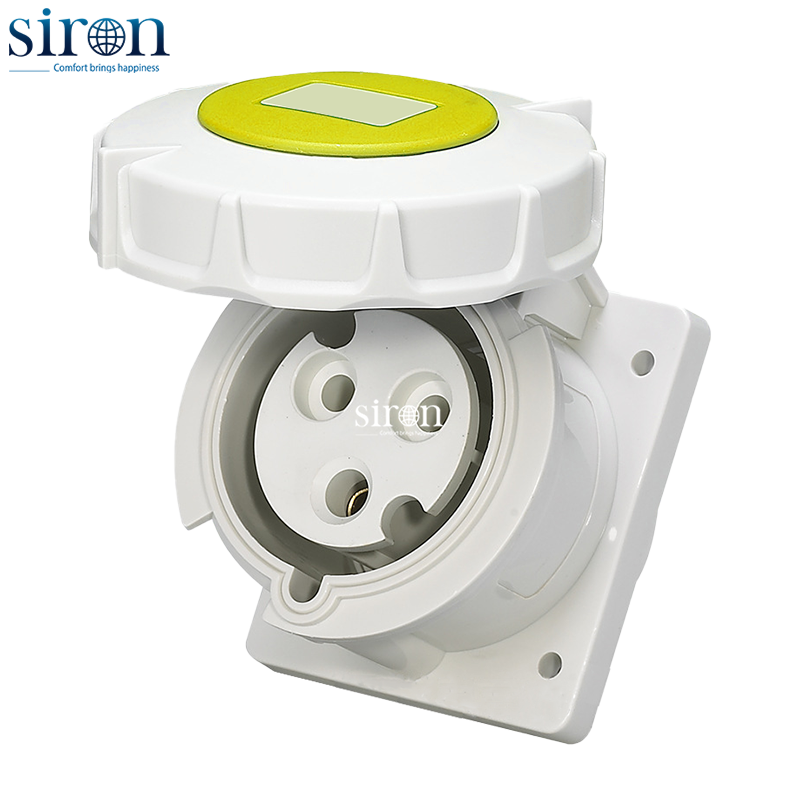 Ổ cắm công nghiệp âm vàng IP67 2P+E 4h 32A 110~130V Siron S67R34-32Y3