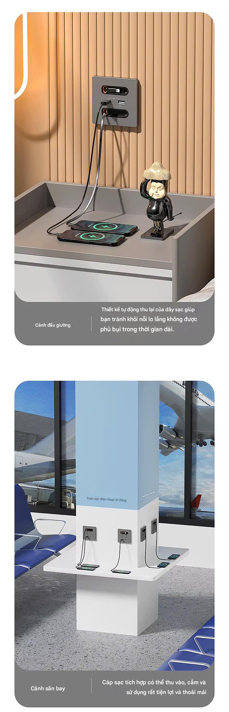 Đặc biệt, với thiết kế nhỏ gọn và khả năng di động cao, bạn có thể dễ dàng mang theo cổng sạc nhanh bên mình. Dù là đi làm, du lịch hay tham gia các hoạt động ngoài trời, bạn sẽ không còn lo lắng về việc hết pin giữa chừng. |